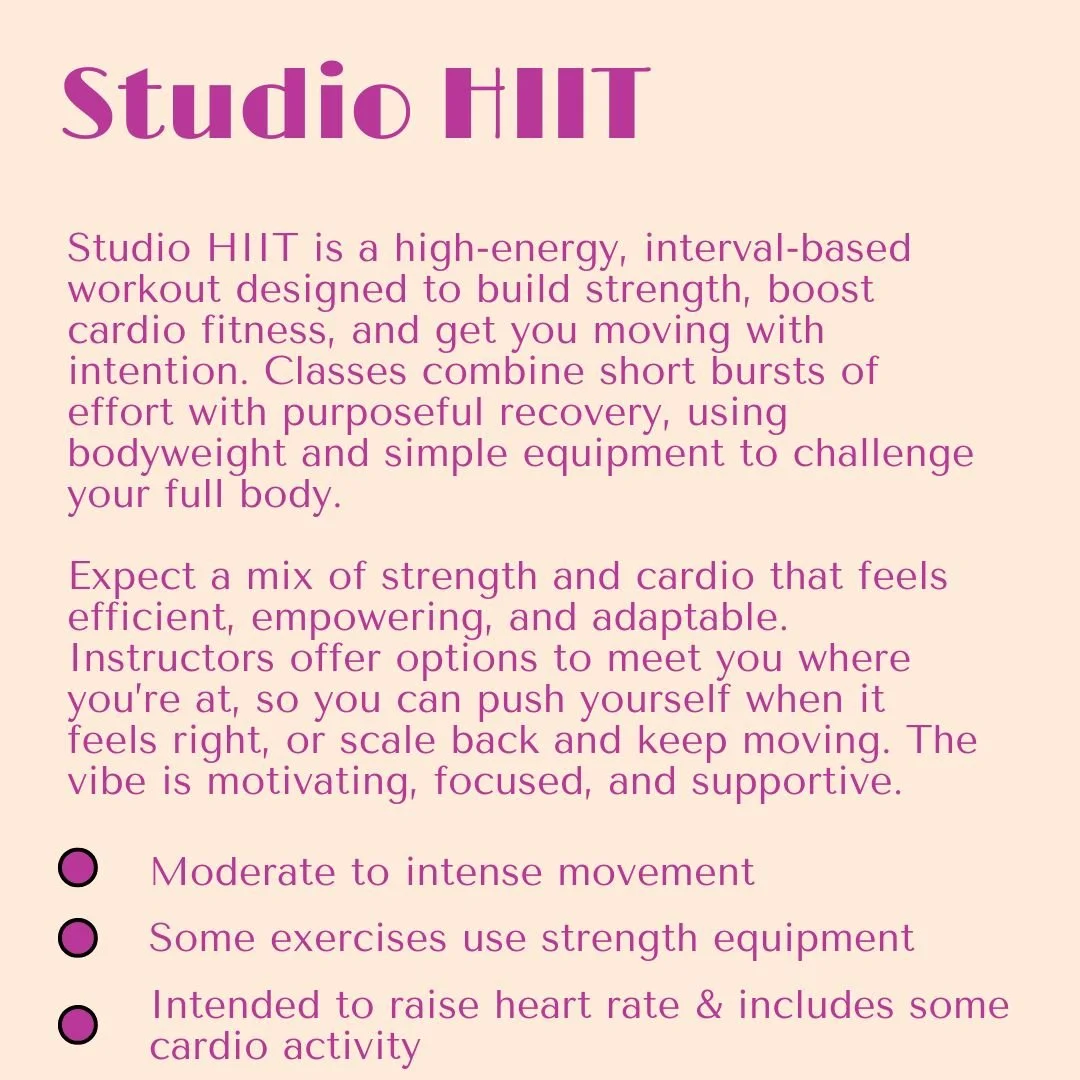 Class Descriptions Have a class suggestion for something you’d like to see at The Studio? Let us know here!